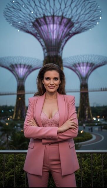 #Singapore fashion#power suit#Gardens by the Bay#futuristic style#confident portrait#modern elegance#Asian fashion#professional style#fierce beauty#urban luxury